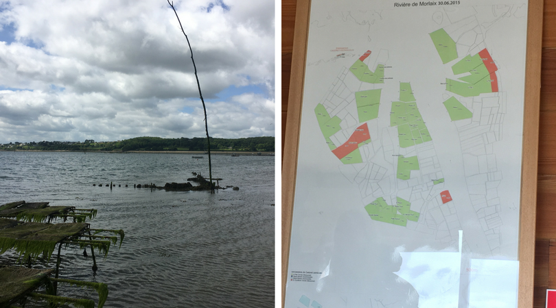 Семья Cadoret арендует большую часть залива Атлантического океана. Да, именно арендует! Устричные фермеры арендуют у государства морские гектары точно так же, как арендуют земли фермеры для сельскохозяйственных работ. Весь залив разделен на участки, владеют которыми разные хозяйства. План залива – один из основных документов устричного хозяйства, поскольку необходимо четко соблюдать водные границы с соседями. Самими точными границами между участками считаются палки, потому как дают 100 % точность, в отличии от морского GPS имеющего погрешность +/- 10 метров.